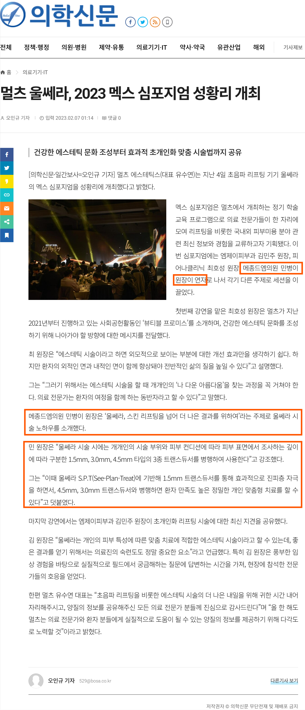 Merz Aesthetics (CEO Yoo Soo-yeon) announced that it successfully hosted the MEX Symposium for Ultherapy on February 4.